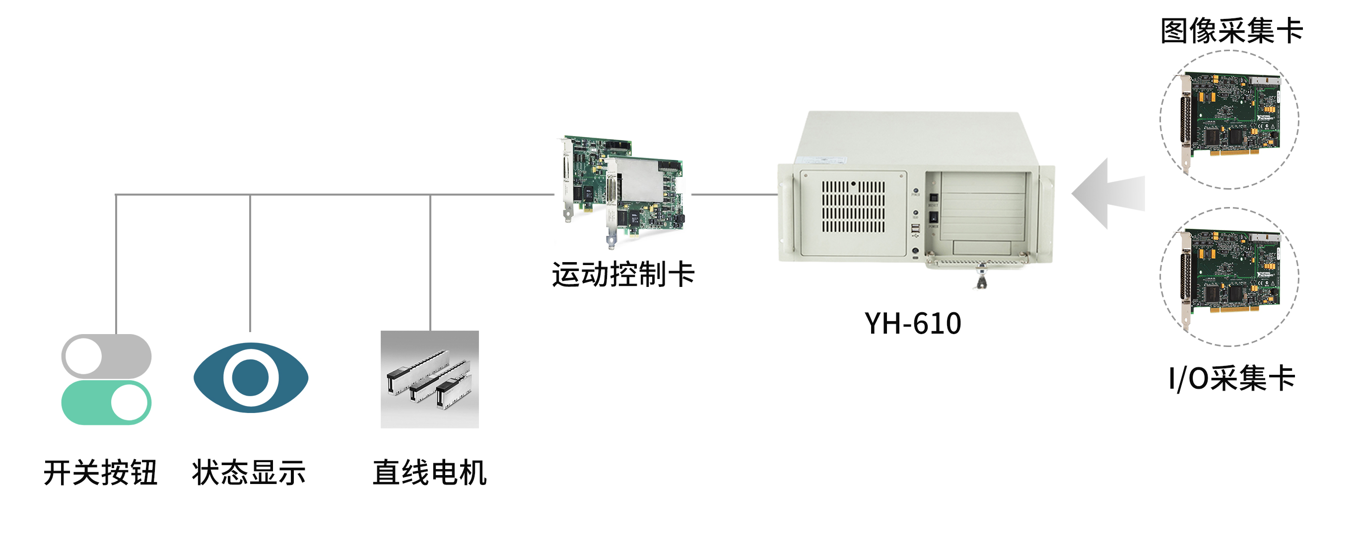 控制主機(jī)采用特控4U工控機(jī)YH-610/I5-6500/8G內(nèi)存/1T機(jī)械盤/1個(gè)PCIE*16+5個(gè)PCI+1個(gè)PCIE*1,配置高性能的6/7代工業(yè)主板,極強(qiáng)的數(shù)據(jù)處理能力,具有豐富接口,堅(jiān)固可靠且便于擴(kuò)展,集成運(yùn)動(dòng)控制卡+圖像采集卡+I/O卡+視覺(jué)控制系統(tǒng)+物聯(lián)網(wǎng)系統(tǒng)能夠進(jìn)一步提高設(shè)備生產(chǎn)效率和市場(chǎng)競(jìng)爭(zhēng)力。