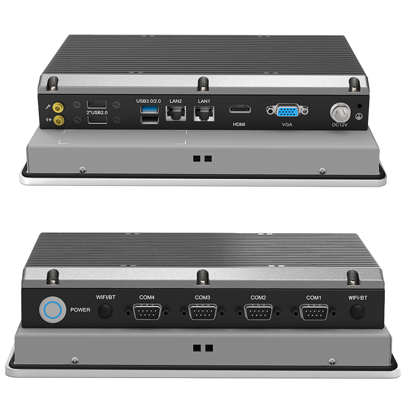 按需選配:英特爾®賽揚® 處理器 J1900 板載處理器,TDP 10W外觀設計:鋁型材一體成型,科技時尚穩(wěn)定可靠:純工業(yè)無風扇設計,大面積鋁鰭散熱,箱體材質(zhì)可抗接觸式6Kv強電磁干擾;液晶屏接觸處加強型密封膠圈設計,面板防水防撞擊人機界面友好:純屏10點工規(guī)電容觸控,操作更便利接口豐富:2*Intel LAN,1*HDMI,1*VGA,4*COM,4*USB,支持1*Msata,1*2.5寸盤位,1*MINI PCIE(支持WIFI或4G功能)